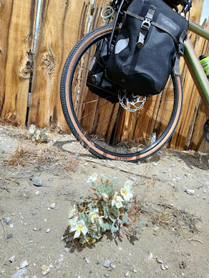Purtroppo non il deserto che uno si aspetta, controllando il meteo ci si rende conto che abbiamo beccato giusto una settimana fredda fuori stagione con temperature dai 12 ai 14 gradi sotto le medie!!! Questo significa che anche oggi abbiamo pedalato con 4 - 8° C, vento gelido e a tratti nevischio alternato a sprazzi di sole...che ovviamente non poteva scaldare!!! Poverino